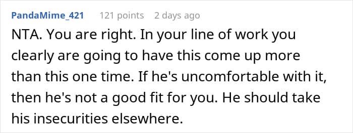 RELATED:It’s rare that someone’s job actually makes their partner uncomfortable
