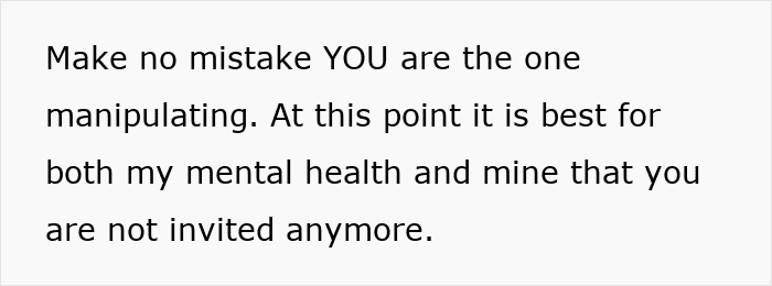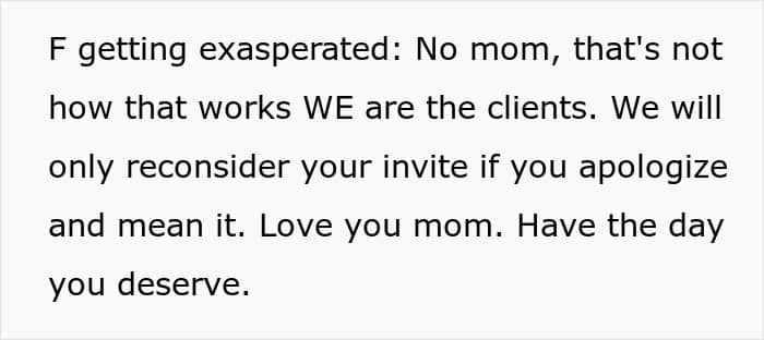 Obviously, the man still wanted to maintain the relationship with his mom, but he decided to stand up for his future wife instead. This must have come as a shock to the older woman, who might have then realized the impact of what she had done. Hopefully, knowing that she’s not invited to her son’s wedding helps her change her ways and do better.