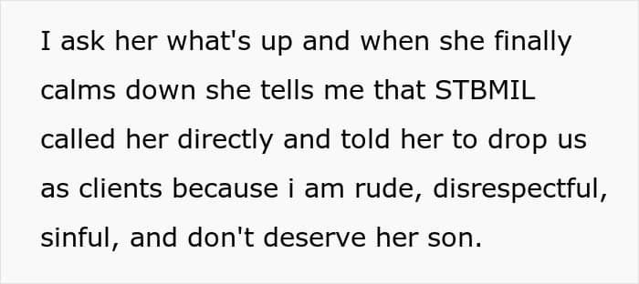 Despite trying to paint her future daughter-in-law as “sinful, rude, and disrespectful,” the older woman couldn’t understand why her son wasn’t taking her side