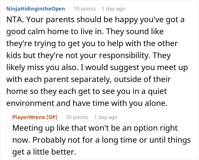 The issue was that his parents were already mad over what he told CPS, but still demanded he return home. OP refused, so they said that he should at least visit to help out, but he just couldn’t bring himself to go back to that. However, he feared that his refusal was making them more angry, so he vented online, seeking advice.