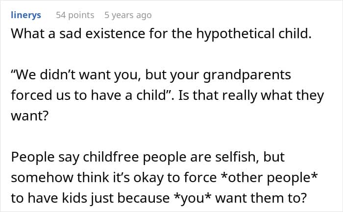 Some people dream of being parents, while others have sworn off ever having kids. Both are personal choices, and both are fine. Or at least, that’s how it should be. But as we have come to learn, there will always be certain folk who feel they’re entitled to others’ reproductive choices.