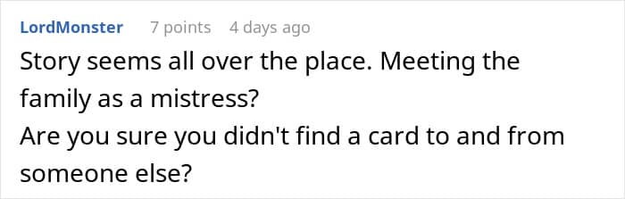 OP was stunned to discover an “anniversary card” that he had gotten for his wife, claiming he loved her. After realizing that she had been a mistress for the past four years, the poster started snooping around and digging up more information on him. His wife was also the owner of his business, but since she worked in a different state, they had a “long-distance marriage.”