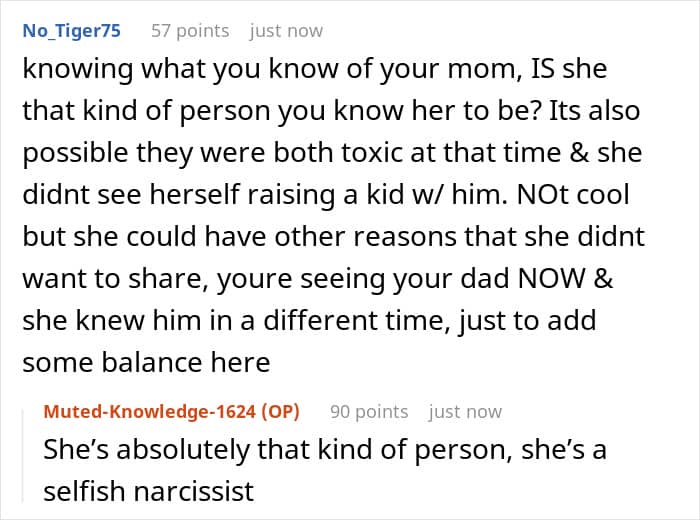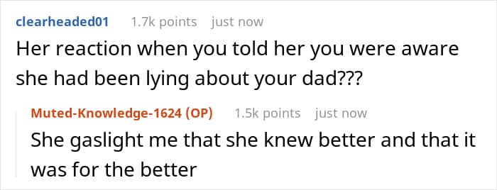 Now, OP’s distancing himself from his mom, furious over decades of lies and a stolen relationship. To him, this wasn’t just confusion – it was complete theft. A lifetime with his father lost? Forgiveness for his mom just feels impossible right now.