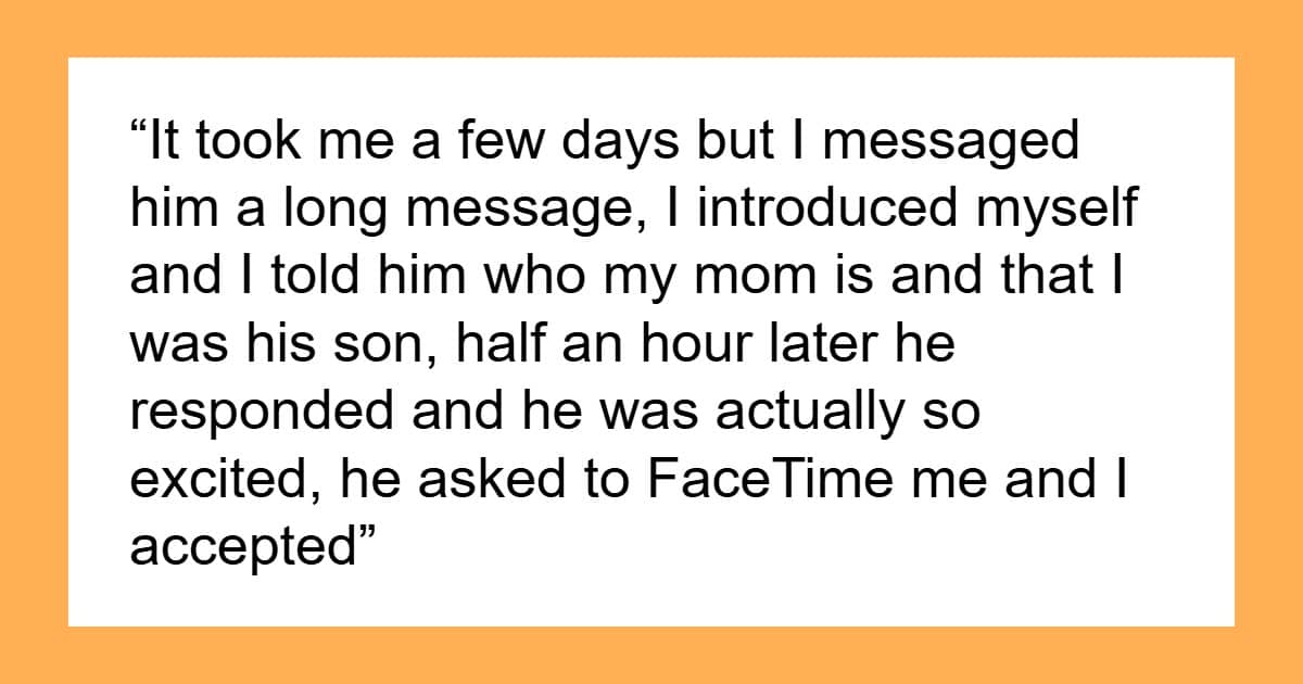 Years later, OP’s curiosity finally won, thanks to a random TikTok post giving it a nudge over the line. After getting a name from his mom, a little time on Facebook did the rest. There he was… an older mirror image of OP, a lawyer, married with four kids. A nervous message led to a reply, FaceTime tears, and then a shocking revelation.