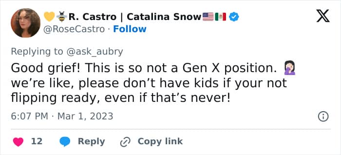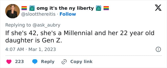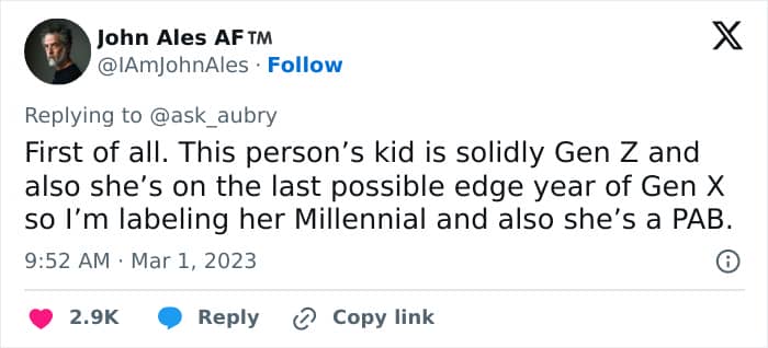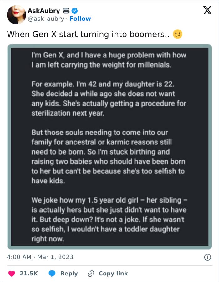 People also questioned why the mom clubbed herself in with Gen Xers