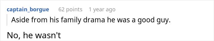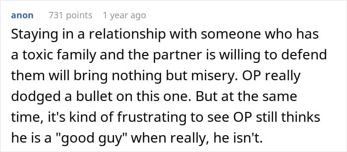Folks were proud of the poster for breaking things off before getting entangled in the man’s toxic family