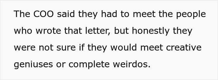 The night ended with laughter, the revelation of mutual meeting safe words, and a Vegas invite later wrecked by Covid. But something bigger stuck. A creative switch flipped. OP and his sister started inventing, writing, and building strange worlds together. The sarcastic letter hadn’t launched a product, but it did spark an exciting career in creativity.