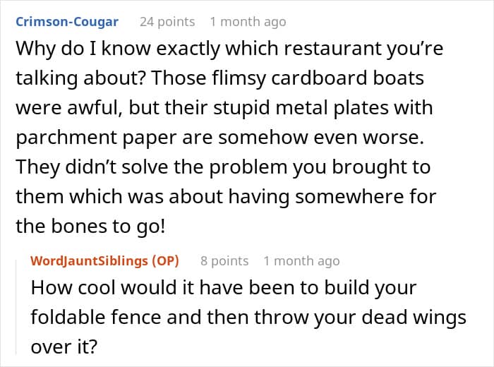 A sarcastic complaint letter meant to amuse the original poster’s (OP) sister accidentally hijacked his life. His family practically lived at a major chicken wing chain. Everyone loved it, but he had some issues. He slowly unraveled over one detail: wings served on flimsy cardboard boats instead of real plates – at a sports bar, no less.