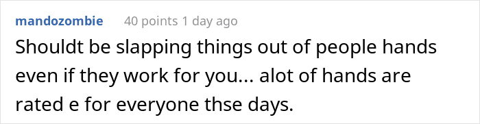 “I think [his behavior] was completely inappropriate even if I worked there,” the Redditor told We. “There’s no way anybody should speak to any person in the way he spoke to me. Regardless if I was staff or not, you still shouldn’t slap an item out of someone’s hand. I think he was very lucky that I’m not a hot-tempered kind of person because I know people who would easily react violently towards someone if they had something similar happen to them.”