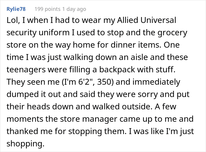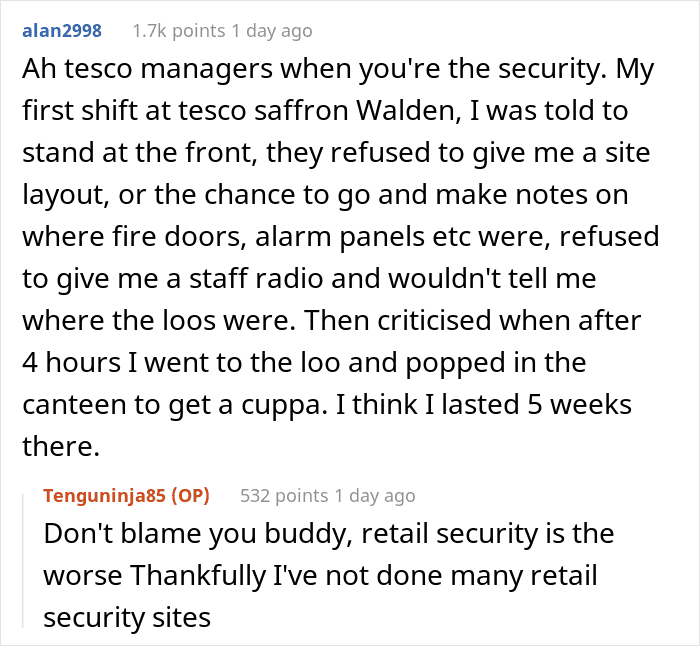 “I frequently go back [to that place] because it is actually my local Tesco but he’s not working there anymore,” the Redditor explained. “I had several friends who worked at the store at that time and when I told them what happened they said he was a nightmare to his staff as well, and eventually was moved to another store.”