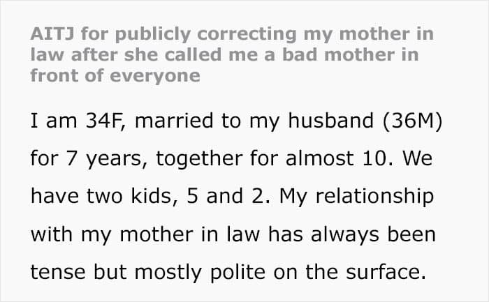 The last straw came during her husband’s birthday dinner, when the lady began criticizing her in front of everyone. However, after the woman called the mother-in-law out, she quickly flipped the script and played the victim. So the Redditor decided to ask the internet if she was wrong for escalating the situation.