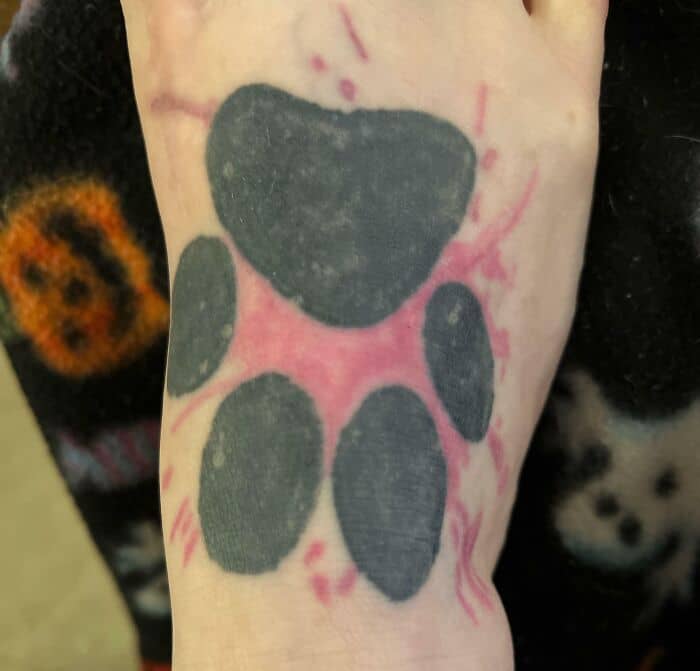I got this tattoo by my best friends roommate, who had done some work on her. This was nowhere near my first tattoo ( I have about 30 and have been getting tattoos for almost 30 years. I knew better than to get a home tattoo. Not his fault it got infected by a dog stepping on my foot at the dog park, but his touch up made it worse. The paw print is MUCH bigger than original and the stupid pink “splash” of color makes people think my foot is scarred up. It’s my most hated tattoo. So, opinions? Will this be a huge and expensive cover up? Or is there no hope?