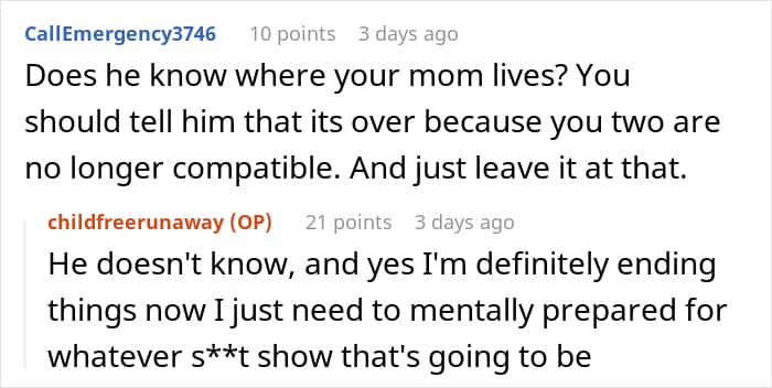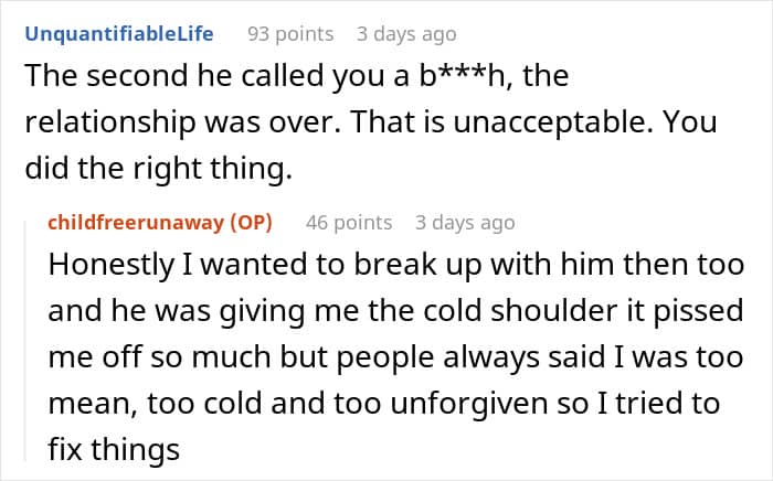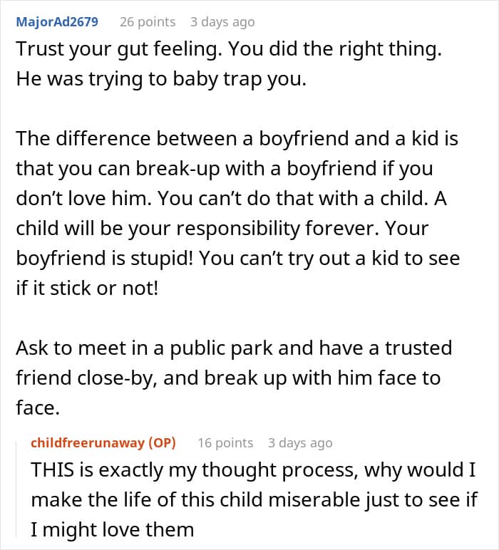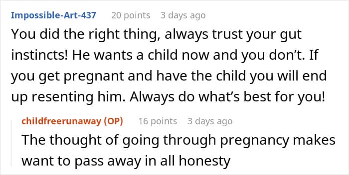 Unfortunately, the man’s pushiness about having kids worried the OP a lot, and she decided to leave. Psychologists say that in cases like this, the couple needs to have some tough discussions on the topic and see if any compromise can be met. If both are firm on their decision to have or not have children, then it might make sense to part ways, or else resentment can build.