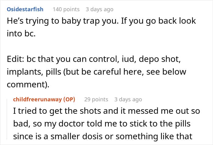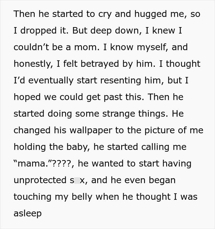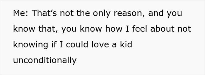 Instead of telling the OP about his desire to have a child, the guy kept pretending like he was on the fence. He tried offering her solutions like adoption or giving herself more time to learn to love kids. The problem is that he also became a bit pushy and started calling his fiancée mama, didn’t want to use protection, and tried getting her to fix her fertility issues.