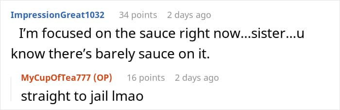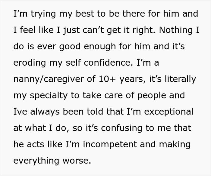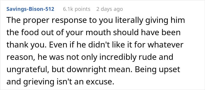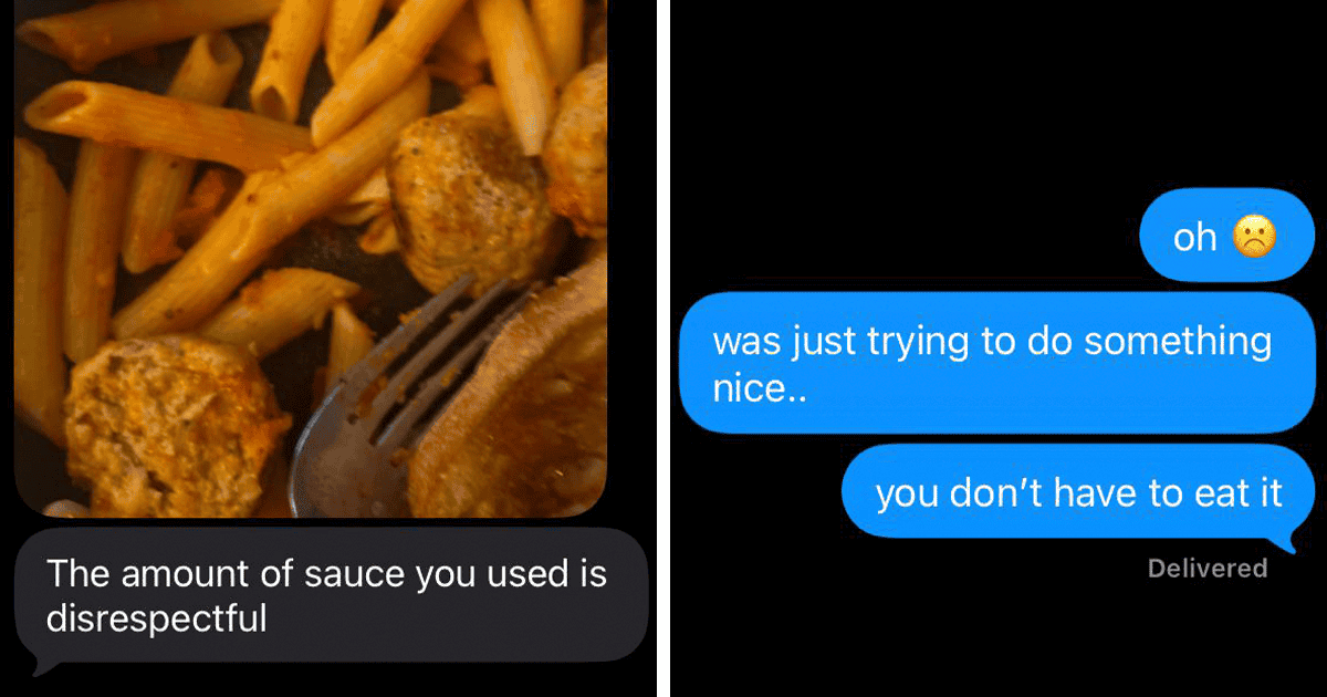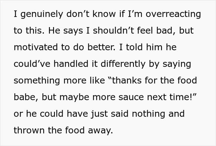 But he criticized the meal, saying it made him feel even worse, making the woman question if she was doing enough.