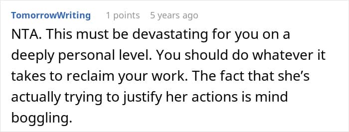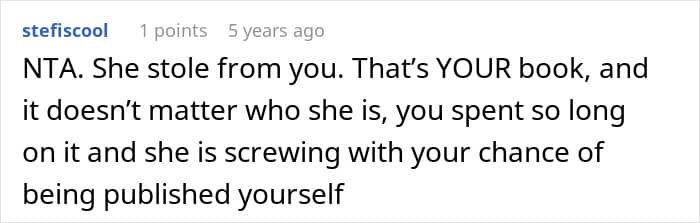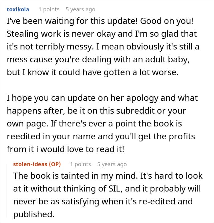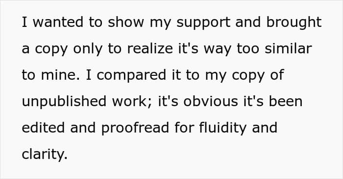 So you can imagine the heartbreak of this Redditor, who decided to support her sister-in-law by buying her new book, only to realize it was a copy of her own story, one she’d been working on since childhood. Feeling shocked and betrayed, she decided to take legal action. But when her family found out, they didn’t take her side.