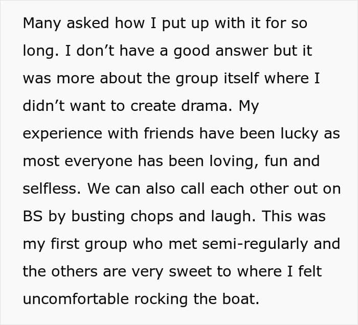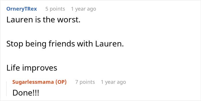 Based on the author’s account, the other friends are also seemingly othered by Lauren’s behavior. She has already done her part with the polite callout and may need to rethink the friendship if the toxicity persists.