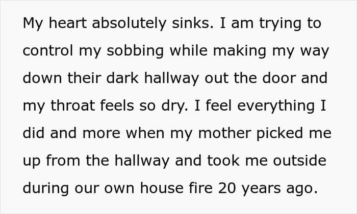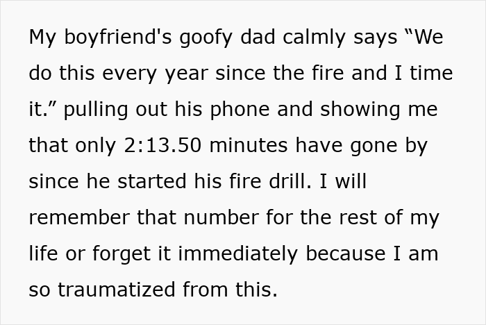 22 years ago, the OP’s boyfriend’s family home burned down. This incident caused a big trauma for the whole family to the point where they keep bringing it up more often than you would expect. The post’s author herself is a victim of a house fire, so she gets her partner’s panic.