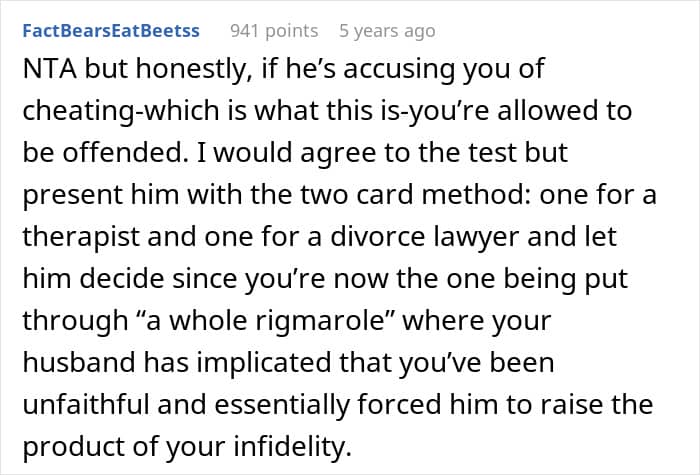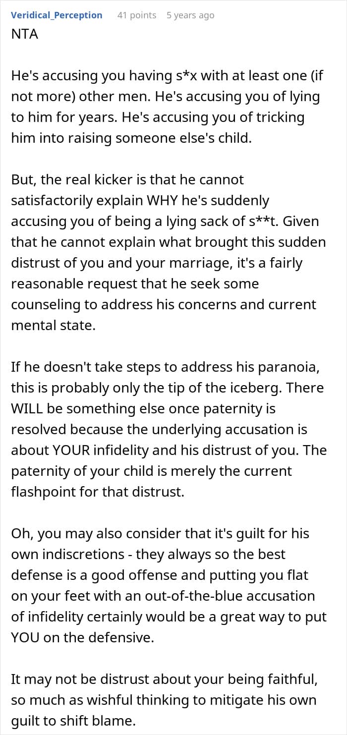 RELATED:A husband constantly insisting on a paternity test might be cause for alarm