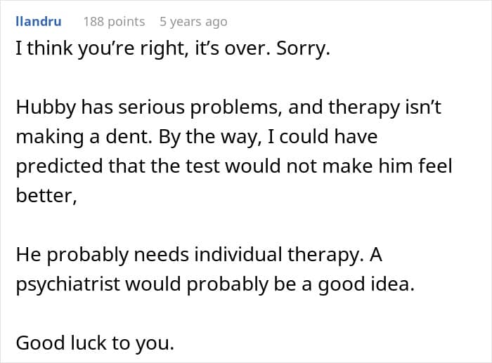 One of the most encouraging parts of the updated story is the couple’s move toward marriage counseling. This pivot is essential because it moves the conflict from being his problem to being a team effort. By sitting down with a licensed professional, the couple can explore whether this sudden doubt is a symptom of paternal postpartum depression or simply the result of prolonged isolation and stress. A professional can help the husband understand that a DNA test might provide a moment of relief, but if the underlying anxiety isn’t treated, he will likely find something else to be plagued by tomorrow. Ultimately, the goal of any healthy partnership is to ensure that both people feel seen and heard without having to resort to ultimatums or secret tests. Moving forward with empathy rather than accusations is the only way to rebuild the bridge that this gut feeling tried to burn down.