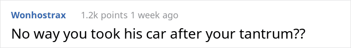 The OP asked what else is also registered to his daughter. He replied that the car the OP used to drive would be taken by the girl when she leaves for college. Then the woman called him a jerk once more, took her son and went to her parents’ house. However, when she told her story in tears, her brother just laughed and said that she behaved like a gold digger and, of course, like the real jerk.