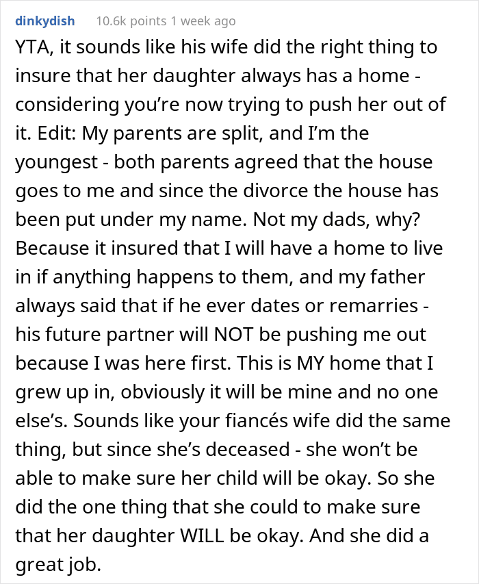 People on Reddit also noted that the late wife prudently agreed with her husband about guarantees for their daughter for the future, and that in any case, they could be calm for the girl.