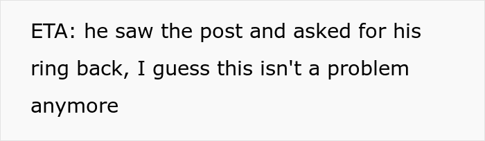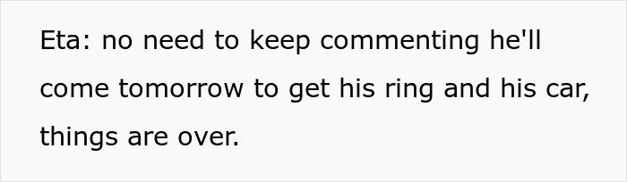 Which, however, cannot be said about the OP. The fact is that her fiancé read her post on Reddit and demanded the ring back. As the woman herself wrote, one of these days he will arrive, take the ring and the car back – and everything will be over.