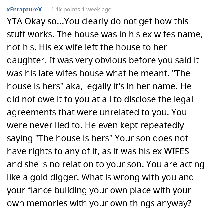 Now, we must say that the opinion of the commenters was almost completely unanimous – and they massively condemned the woman, telling her she really behaved like a gold digger. The Redditors could not resist reminding her of the tale of the Snow White and the fact that the OP almost became the very evil stepmother of a 15-year-old girl.