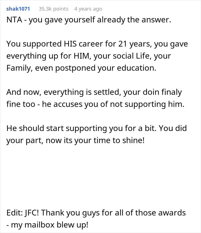 “Polish that backbone!”: many felt it was time for the woman to put her needs first