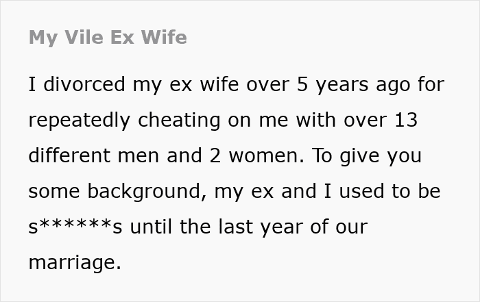 Finding out your wife is cheating can’t be easy. Now imagine learning that she’s been with 13 men and 2 women during your marriage. And those are only the ones you know about. That’s exactly what one man says he went through before finally getting a divorce.