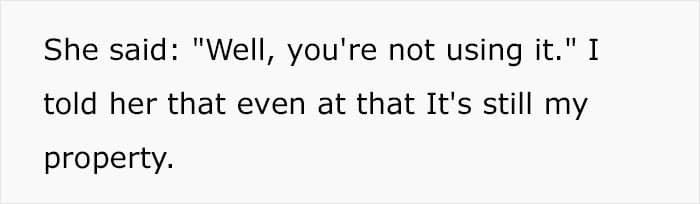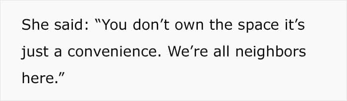 However the neighbor claimed that the author’s driveway was a kind of ‘community resource’ and got livid over her demand to stop her son parking there