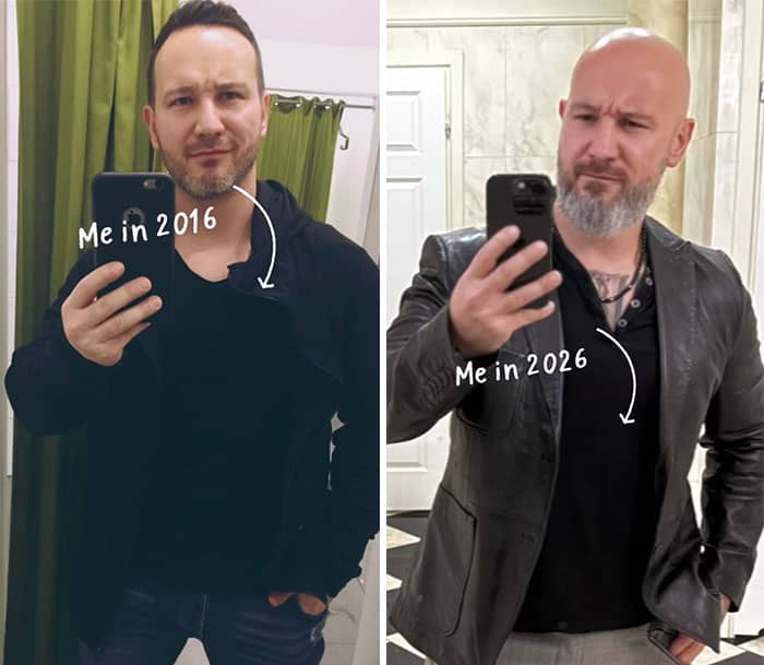 So we’ve gathered some wholesome examples of people sharing their pictures from 2016 and 2026, showing all the ways folks have and haven’t actually changed. Get comfortable as you scroll through, upvote your favorites and be sure to share your thoughts in the comments down below.