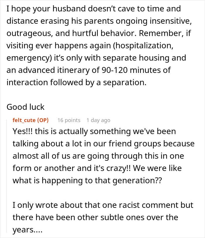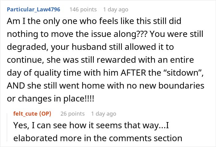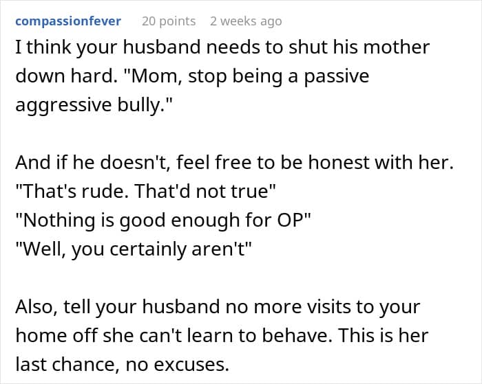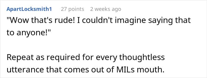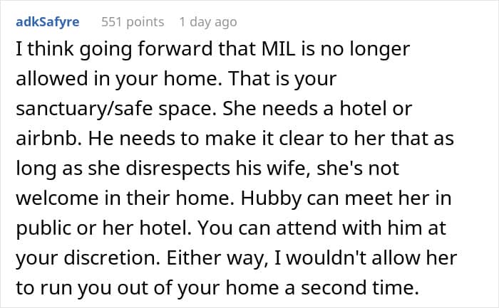 Handling such conflicts can be exhausting, especially in the woman’s case, where her MIL refuses to give a genuine apology. Experts like licensed clinical social worker Brooke Schwartz, LCSW, typically advise approaching with empathy, but based on the story, the situation seems to have passed that point.