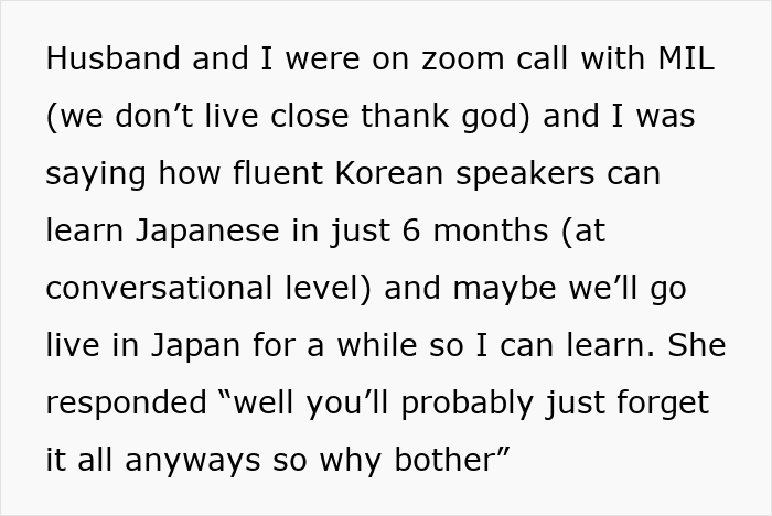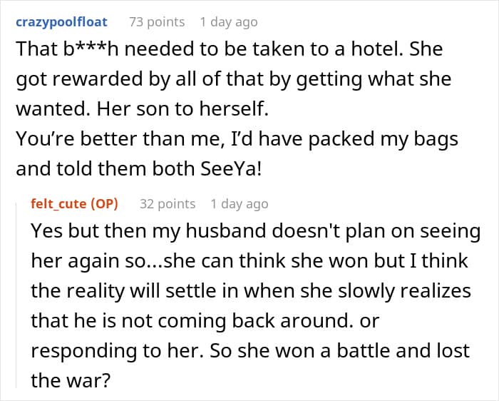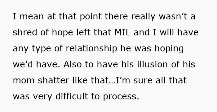 Meanwhile, the woman was left dumbfounded at how her MIL self-sabotaged her relationship with his son