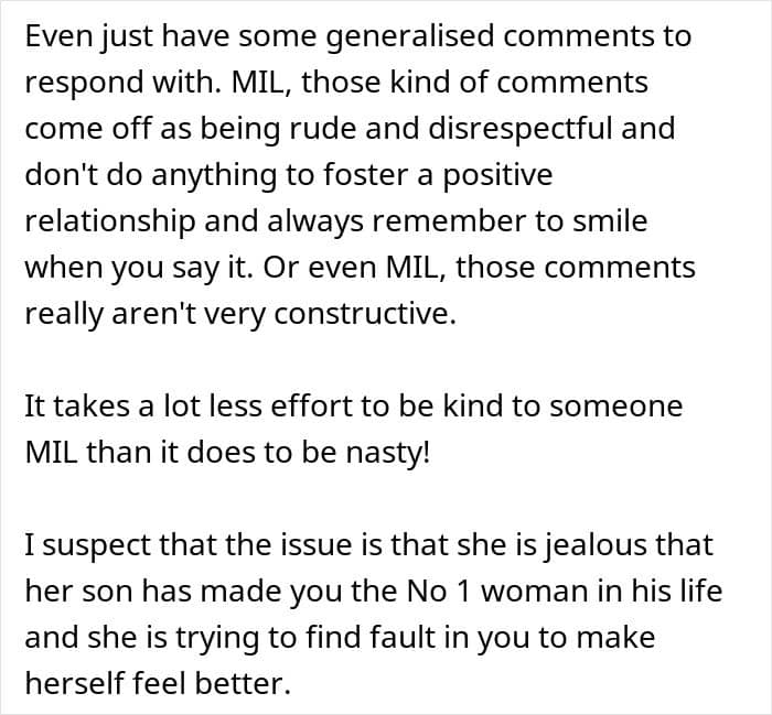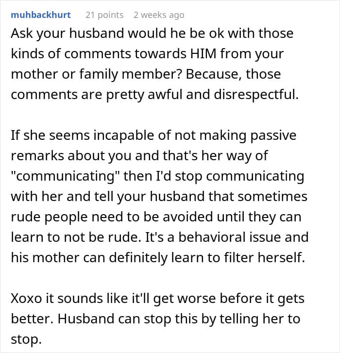 Another one of her issues is her MIL’s passive-aggressive behavior