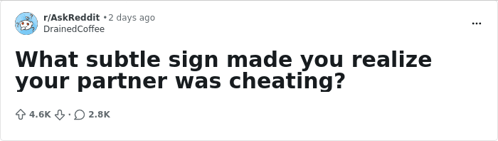 On Reddit, people shared the subtle signs that revealed their significant other was being unfaithful—and some of them are genuinely wild. We’re talking about things you’d never even consider, like a partner suddenly using a completely different set of emojis.