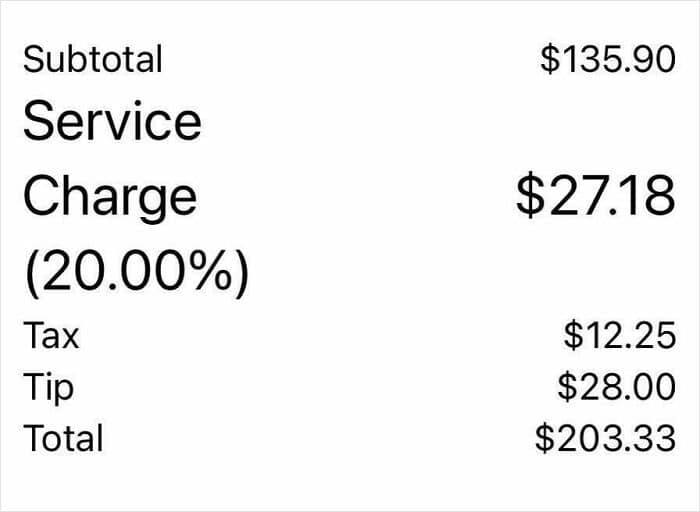 Finally get back to the hotel and the emailed receipt thankfully had the entire pricing breakdown and I see there was already a 20% service charge on the bill that the server never told us about and I guess expected customers to blindly add a secondary tip hoping they wouldn’t read the receipt. I found this extremely unethical and I demanded the second tip back. Just remember to always check your receipts!