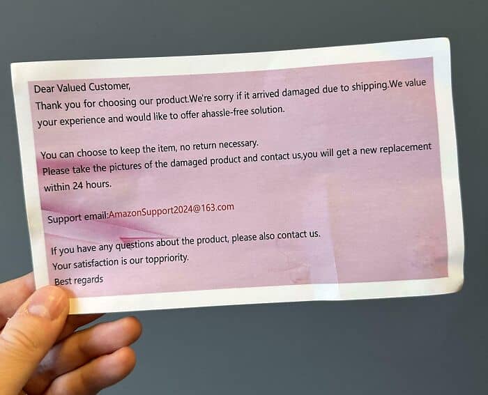 #26 Amazon Package Was Dropped Off Outside At 7am. Someone Opened It And Stole The Contents Then Left This Scam Support Note