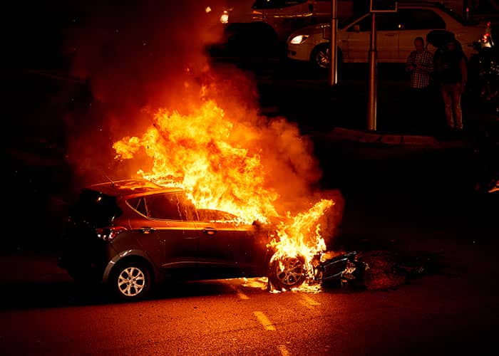 The Jeep caught fire and some other bystander rushed to get the driver out of the vehicle as it very quickly was engulfed in flames. The whole time I stood there slack-jawed. Completely unreal experience to witness after just coming out of the theater.