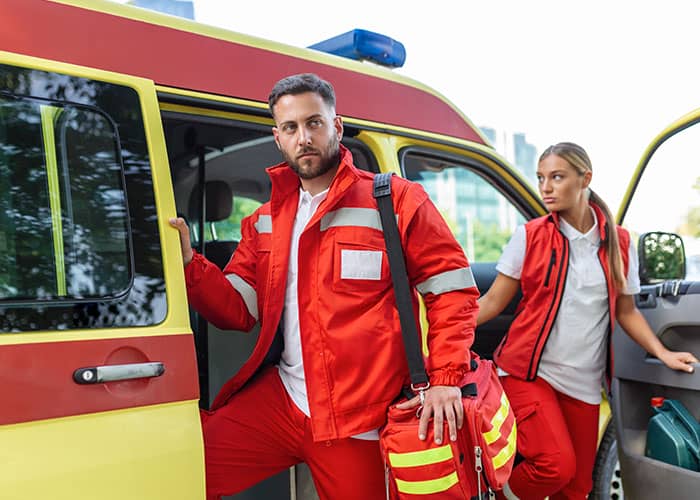 I climbed over the front seats into the back, and started helping the assessment/treatment. Then, the whole ambulance started to shake, and it turns out the family followed in cars, got out, and were all around the vehicle (doors locked).