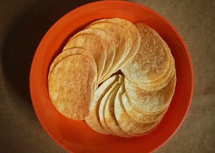 Pringles (and baked Lays/similar) are made of rehydrated and compressed rejected/excess parts of potatoes that go into regular chips. I learned that from my dietician at work and thought that was odd. I still like them over regular chips.