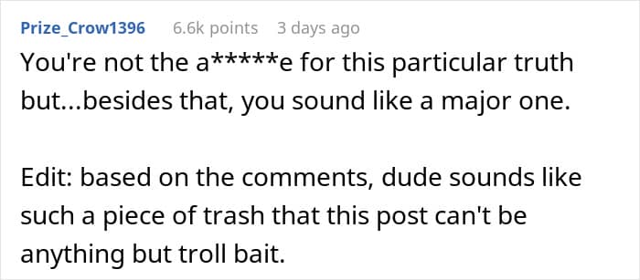 As for the comments from the other users, if the man wanted to find some kind of moral support here, then his plan definitely failed. Most commenters simply slated him for the situation as a whole, arguing that the original poster’s behavior, and especially his choice of expressions, seems extremely dubious.