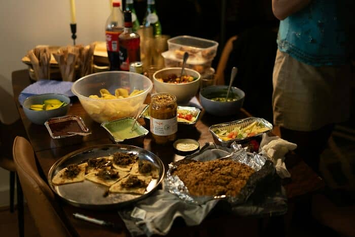 If you ask me to take my shoes off, I better not leave your house with chunks of food squished into my socks. I actually carry “house shoes” with me now because of this.