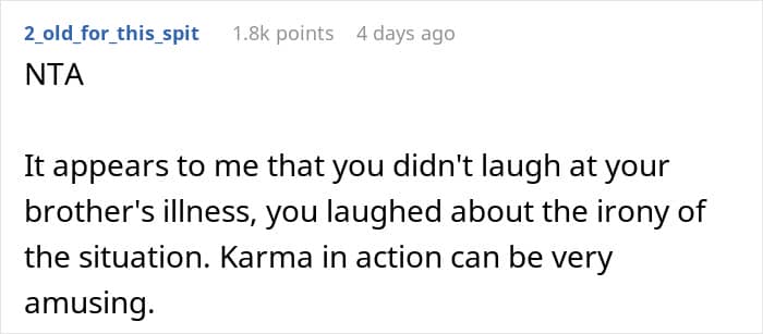 Their mother, furious that she dared to laugh, dragged her to get blood tests too, but her result came out and she was completely healthy. The OP laughed harder this time which made her mother even more furious, leading her to tell the extended family about how she laughed at her “unfortunate” brother. Now, the whole family was lashing out at her which left her wondering if she was wrong for laughing.