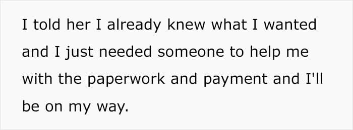 The good news is that those folks get decent commissions from each sale and the salesman that ditched our OP was left without a bonus because the couple didn’t purchase anything. And as a cherry on top, before leaving, the author turned around and proudly said: “turns out I could afford it.”