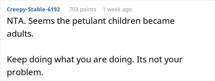 Folks online sided with the poster and chastised the half-siblings for not believing her and making her suffer
