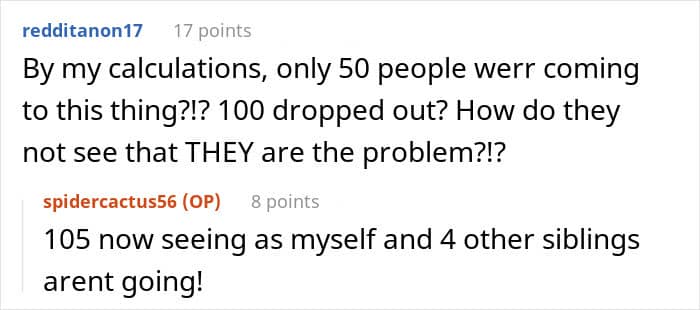 “I want nothing to do with my brother and his fiancée,” the person who goes by the name of Spidercactus56 on Reddit stated in a post on the Wedding Shaming community.