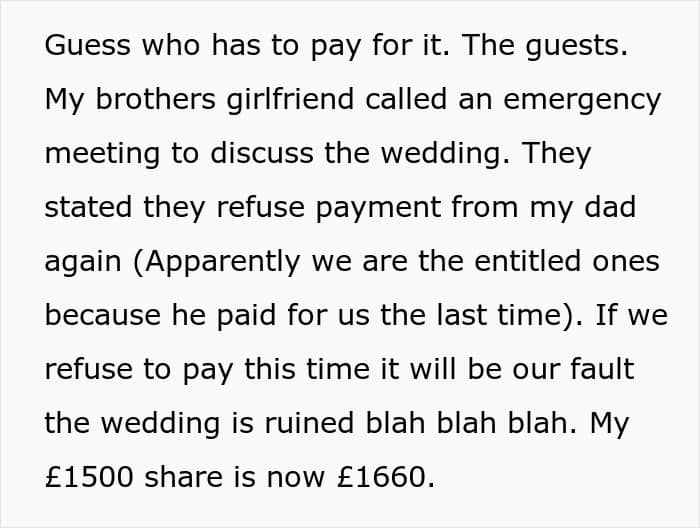 Recently, a person turned to a subreddit to share how they were done with an entitled brother who expects everyone to pay for his lavish wedding… twice