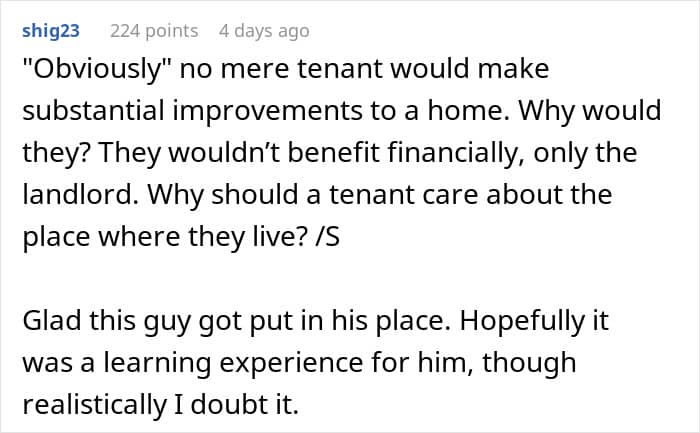 RELATED:Tenants who take care of and improve the property are a landlord’s dream. However, not everyone feels that way