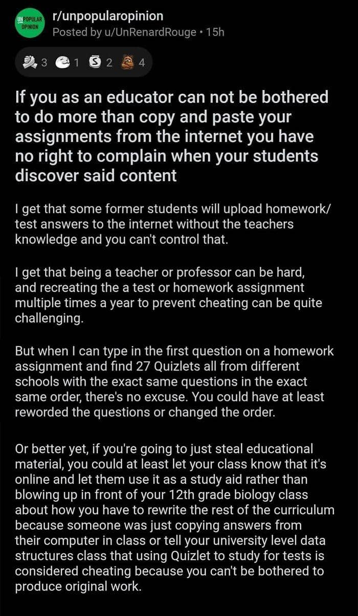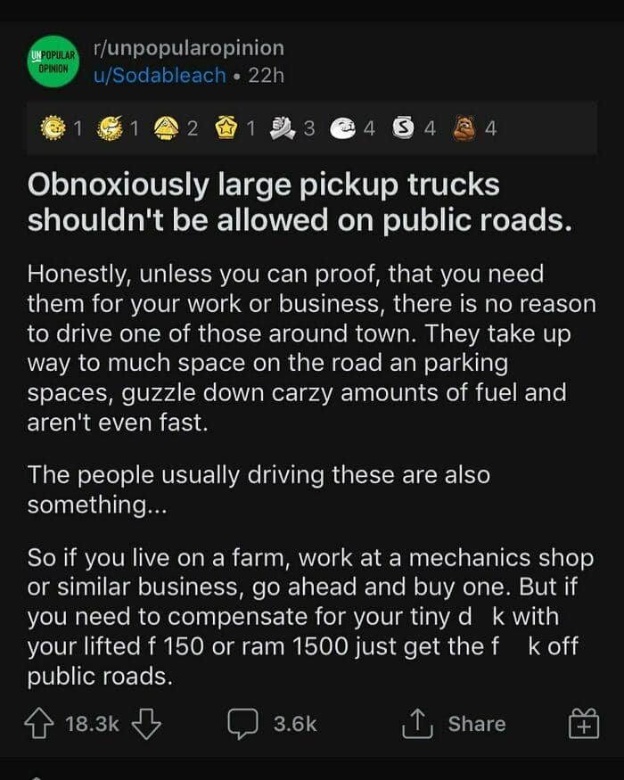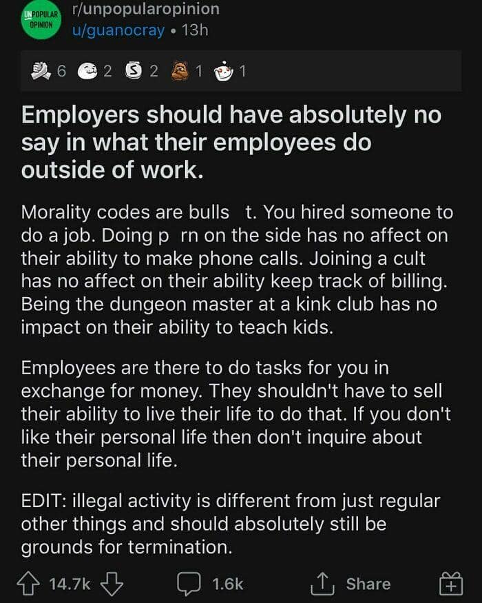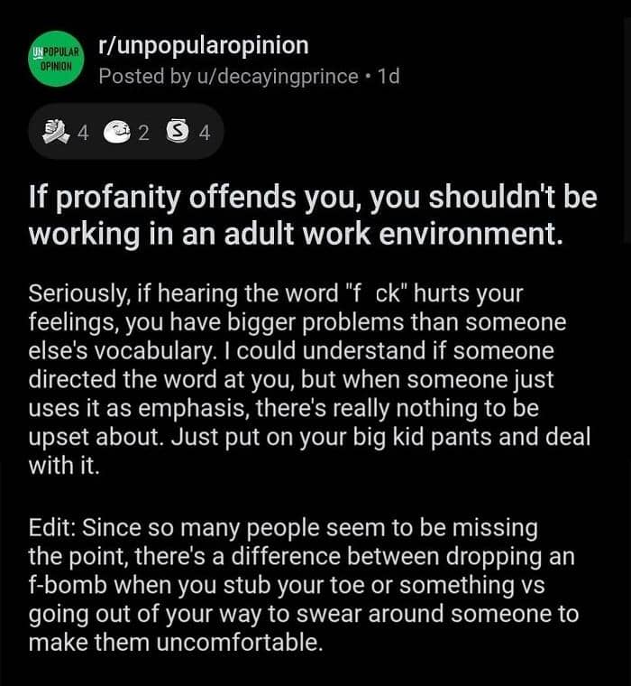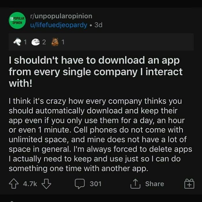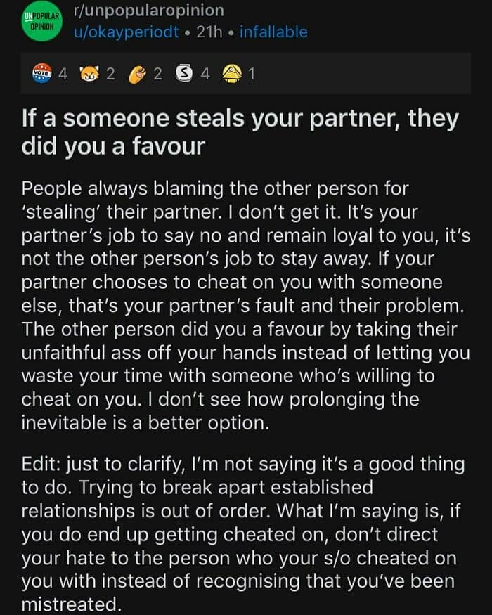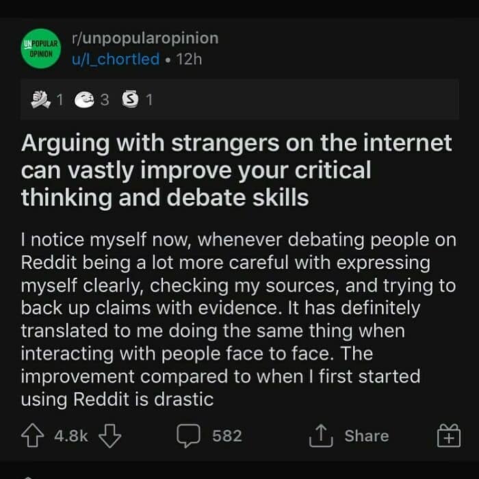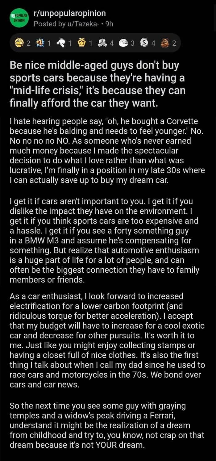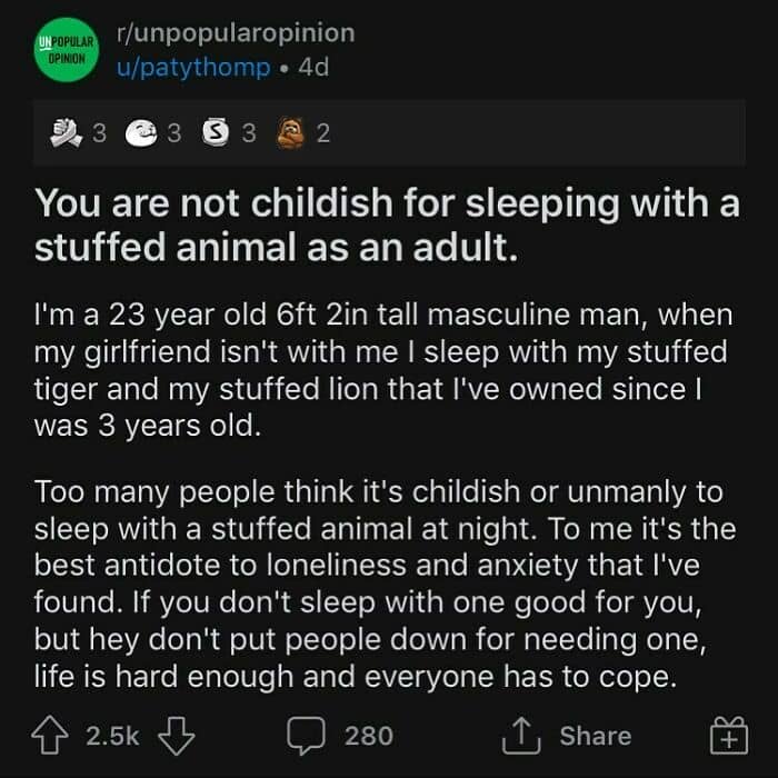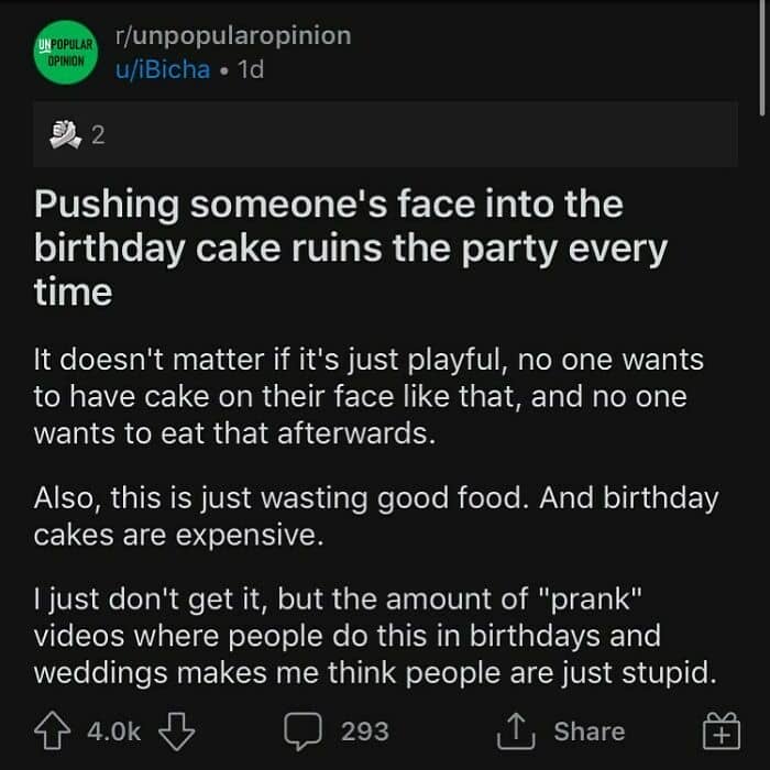 When not every opinion is greeted with open arms, we’re lucky to have the internet where we can spark a discussion with complete strangers. There’s an Instagram account dedicated to sharing some of the best posts from the popular subreddit called Unpopular opinion. From electric vehicles to stuffed animals, members of this community have something to say about virtually any aspect of life.